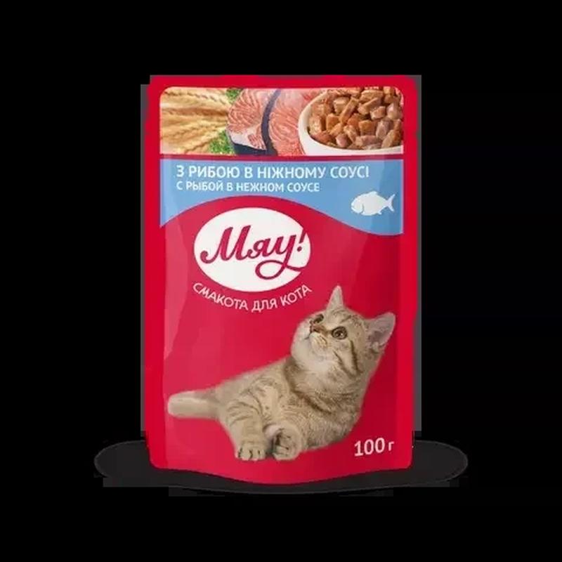 Корм МЯУ для котов — Пауч рыба в нежном соусе, 85 г — это полноценное и сбалансированное питание для взрослых кошек, приготовленное из качественного рыбного филе. Сочные кусочки рыбы в нежном соусе порадуют вашего питомца вкусом и ароматом. Преимущества и состав Корм МЯУ содержит тщательно отобранную рыбу — источник легко усвояемого белка и полезных омега-3 жирных кислот, поддерживающих здоровье кожи и шерсти. Нежный соус делает корм особенно вкусным и улучшает усвояемость питательных веществ. В состав включены витамины и минералы для здоровья зубов, сердца и иммунной системы. Польза для здоровья - Высокое содержание белка и полезных жиров для силы и активности питомца. - Натуральные ингредиенты без искусственных ароматизаторов и консервантов. - Сбалансированная формула для ежедневного кормления. - Витамины и таурин для здоровья сердца и зрения. - Легко усвояемая текстура с нежным соусом для комфортного пищеварения. Рекомендации по кормлению Подавать корм комнатной температуры. Взрослой кошке средней активности рекомендуется 2–3 пауча в день в зависимости от веса и уровня активности. Обеспечьте постоянный доступ к свежей воде. Пауч МЯУ с рыбой в нежном соусе, 85 г — это вкусное, полезное и сбалансированное питание, созданное с заботой о здоровье вашей кошки.