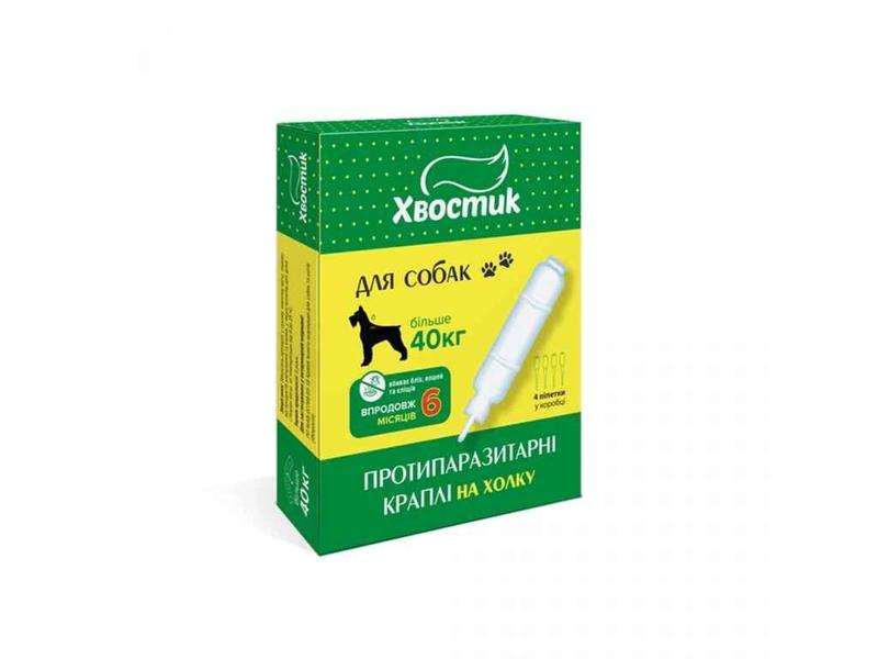 Капли на холку противопаразитарные (фипронил) для собак от 40кг (6,0мл - 4 шт) тм хвостик
