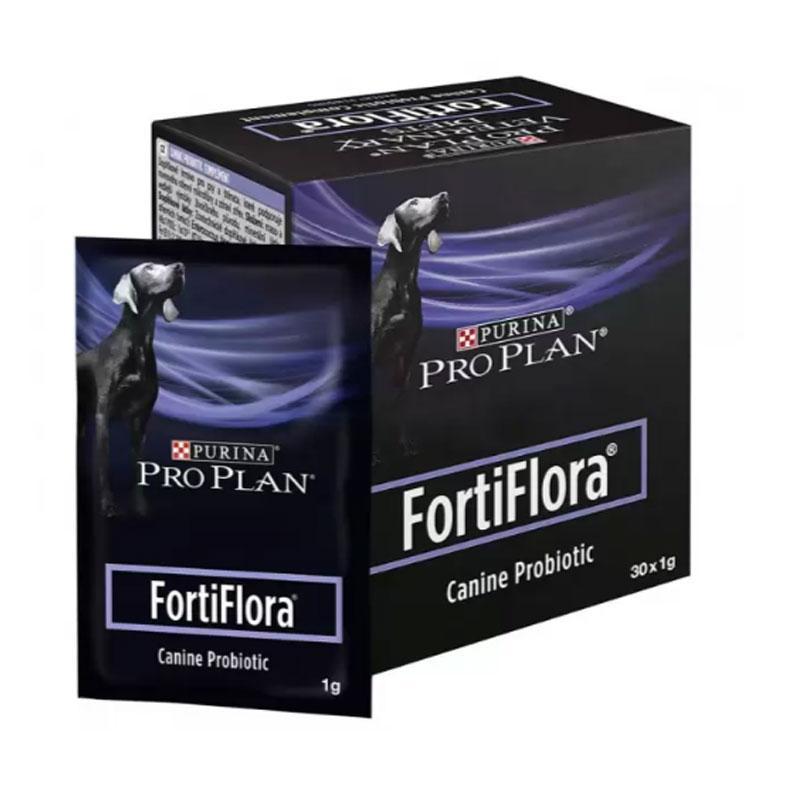 Pro Plan FortiFlora (Про План ФортиФлора) - это пробиотик для собак, который содержит отборные бактерии, специально подобранные для поддержки здоровой пищеварительной системы и укрепления иммунитета вашей собаки. Помогает уменьшить риск возникновения проблем с пищеварением и аллергий на пищу, а также улучшить качество каловых масс. Важно! Ниже приведено описание пробиотика Purina Pro Plan FortiFlora, которое является собственной упрощенной версией сайта **************** Оно основывается на информации, представленной в официальной инструкции. ПЕРЕД ИСПОЛЬЗОВАНИЕМ ОБРАТИТЕСЬ К ВЕТЕРИНАРУ! Purina Pro Plan FortiFlora для собак - инструкция по применению Purina Pro Plan FortiFlora представляет собой лекарственный пробиотик, витаминный комплекс в виде корма для собаки, который способствует нормализации работы желудочно-кишечного тракта. Препарат назначает для лечения последствий приема антибиотика, любых воспалительных процессов, которые вызывают нарушение микрофлоры кишечника. ФортиФлора (Purina Pro Plan FortiFlora) назначается для собак любого возраста или породы. Состав ФортиФлора (Purina Pro Plan FortiFlora) для собак - это комплекс минералов, витаминов, мяса и субпродуктов, а также тут есть пищевые добавки и микроэлементы. Если вы хотите купить ФортиФлора для собак, то обращайтесь в специализированный ветеринарный интернет-магазин Фаунамаркет. В онлайн- каталоге на нашем сайте есть большой выбор качественной лекарственной продукции, а также витаминов и веттоваров для вашего питомца. Мы гарантируем быструю доставку и помощь опытных специалистов в выборе оптимального продукта. Фармакологическое действие Purina Pro Plan FortiFlora Благодаря уникальному продуманному составу ФортиФлора оказывает комплексное воздействие на пищеварение собаки. После попадания в желудок, действующие вещества из состава, как обычные витамины и минералы из корма, имеют несколько эффектов воздействия. В частности, продукт содержит большое количество кисломолочных бактерий, которые положительно сказываются на функционировании ЖКТ и нормализуют баланс кишечной микрофлоры. Кроме того, он повышает иммунитет собаки и в целом способствует поддержанию состояния здоровья. Purina Pro Plan FortiFlora - показания к применению - При нарушениях работы ЖКТ. - При диареи. - При расстройствах пищеварения, если они вызываются стрессом, приемом лекарственных препаратов или изменением рациона питания. - Как дополнительный компонент в составе комплексной терапии при нарушениях функционирования желудочно-кишечного тракта. Купить Purina Pro Plan FortiFlora можно для собак разного возраста или породы. Пурина Про План ФортиФлора для собак - противопоказания У ФортиФлора основным противопоказанием к приему является наличие аллергии или индивидуальной непереносимости любого компонента из состава. Перед применением корма, рекомендовано тщательно изучить инструкцию и состав, а также проконсультироваться с ветеринаром. Purina Pro Plan FortiFlora - способ применения и дозировка ФортиФлора для собак выпускается в виде специального порошка, который необходимо рассыпать на корм животного один раз в день. Его не разделяют на несколько частей, а применяют сразу одним приемом. Дозировка ФортиФлора (Purina Pro Plan FortiFlora) для собак - 1 пакетик порошка в день. Особые предосторожности при применении Побочные эффекты от ФортиФлора (Purina Pro Plan FortiFlora) для собак отсутствуют, если у животного н