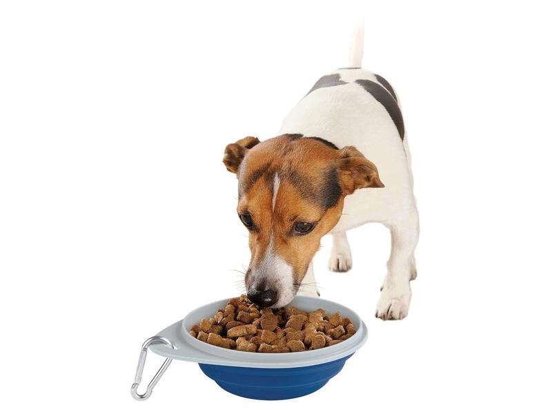 Складная дорожная миска для собак Zoofari® - Можно сложить для экономии места - Прочный, прочный материал - В комплект входит карабин для крепления. - Можно мыть в посудомоечной машине (чашу) - Подходит для сухого и влажного корма. - Емкость: около 0,75 л - Внутренний диаметр: около 15,5 см. - Перед стиркой снимите карабин. Цвет: Синий Размер: около Ø 15,5 см Объем: 750 мл Материал: Пластик / Силикон