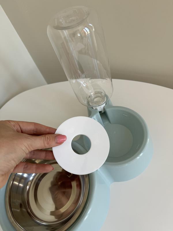 Поїлка + мисочка для домашніх улюбленців 🤗 • Матеріал: харчовий пластик • Розміри: - довжина всієї конструкції 30 см - місце де тарілка: 17 х 17 см - місце де пляшка: 12 см / висота пляшки 16 см •Поїлка вміщає 500 мл води