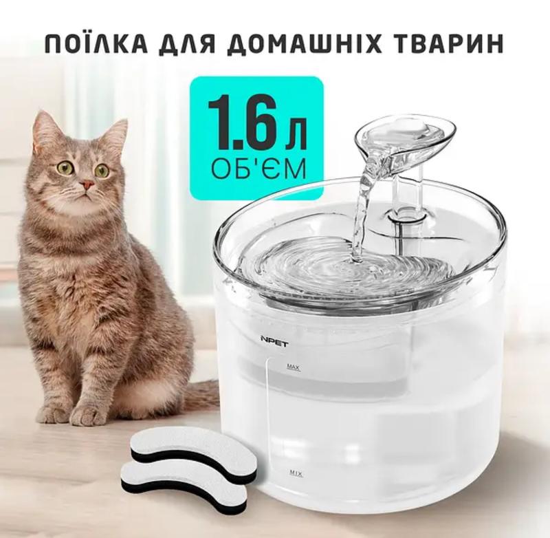 Питний фонтан для кішок і собак npet wf100 1.6l, поїлка для кота і собак з фільтром