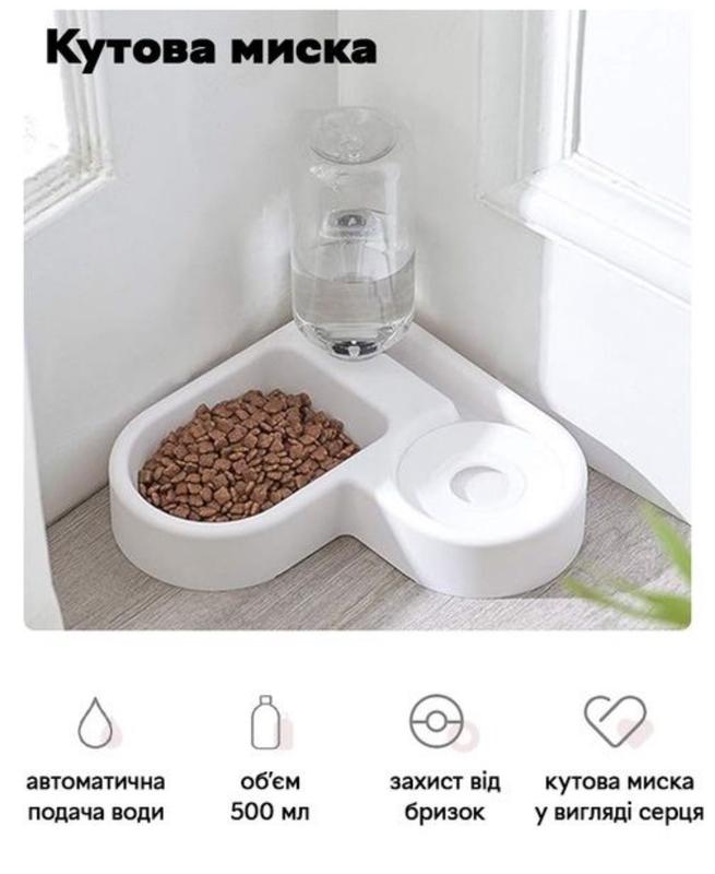 Автоматическая поилка: Обеспечивает постоянный доступ к свежей воде, что позволяет вашим любимцам пить в любое время. Угловой дизайн: Занимает минимум места и идеально подходит для установки в углу комнаты или помещения. Большая емкость 500 мл: Обеспечивает достаточное количество воды в течение длительного периода, не требуя частого пополнения. Для кошек и собак: Подходит как для кошек, так и для собак небольших и средних пород.