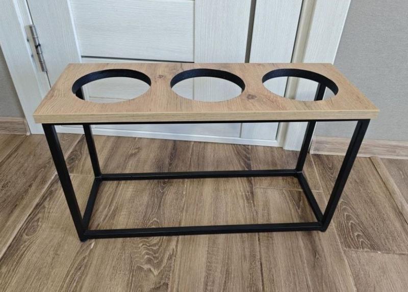 Стойка для собачьих мисок / держатель для мысок Подойдет для средних собак. Эксклюзивная вещь. Делалась под заказ. Общая высота 34 см Ширина 21 см Длина 58,5 см Диаметр отверстий для мисок 15 см Стойка б/в, но каких-то нюансов не имеет. Общее состояние хорошее.