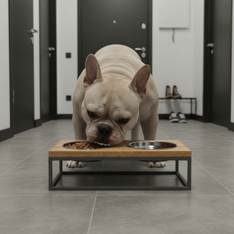Особливості Две миски по 0,95 л, диаметр 17 см. Стационарная высота — 10 см. Подходит для крупных кошек и средних собак. Розміри Габариты (Д×Ш×В): 42 × 21 × 10 см — высота: 10 см — диаметр миски: 17 см Породи Мопс, Такса, Джек-рассел, Ши-тцу, Французский бульдог; кошки: Мейн-кун. Основні переваги Большие порции, эргономичная высота, лёгкость ухода. Характеристики Тип: Подставка с мисками для мелких животных Количество мисок: 2 Материал мисок: Нержавеющая сталь Материал столешницы: Натуральное дерево Цвет рамы: серая Цвет столешницы: натуральная
