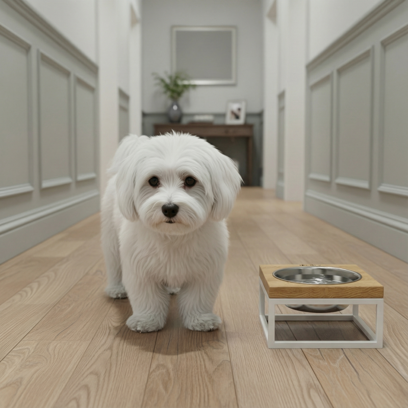 Особливості Две миски по 0,45 л, диаметр 14 см. Стационарная высота — 7 см. Эстетичный дизайн, подходящий под любой интерьер. Розміри Габариты (Д×Ш×В): 36 × 18 × 7 см — высота: 7 см — диаметр миски: 14 см Породи Йоркширский терьер, Чихуахуа, Мальтипу, Той-пудель, Померанский шпиц; кошки: британская короткошерстная, шотландская вислоухая, персидская. Основні переваги Эргономичность для мелких пород, простота ухода, стильный внешний вид. Характеристики Тип: Подставка с мисками для мелких животных Количество мисок: 2 Материал мисок: Нержавеющая сталь Материал столешницы: Натуральное дерево Цвет рамы: белая Цвет столешницы: натуральная