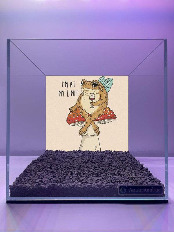 Посреди леса, где каждый день напоминает психоделический сон, живет лягушка Тина - героиня, которую мир не ждал, но точно нуждался. Она сидит на мухоморе, как на троне, с бокалом вина в одной лапке и нежно размытой улыбкой в глазах. На спине - бантик, во взгляде - усталость воина. Она не кричит, не панически. Она просто говорит: "I’m at my limit." Это не крик о помощи. Это декларация. Потому что иногда самое лучшее — просто признать: достаточно. И налить себе еще немного вина. Размер аквариума 25"25"25 см