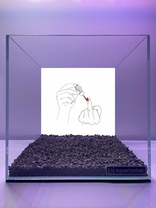 У неї був план — виглядати прекрасно навіть тоді, коли світ валиться під ноги. І ось вона, із вивіреною точністю та спокоєм, фарбує червоним лаком свій середній палець. Ні, це не про агресію. Це про гідність. Про стиль. Про відповідь, яка не потребує крику. Цей жест — її мантра. Її медитація. Її «я вас почула» у формі червоного лаку. Бо якщо вже казати «ні», то з блиском. Якщо вже мовчати — то ефектно. І хай увесь світ зачекає, поки вона висохне. Розмір акваріума 25"25"25 см