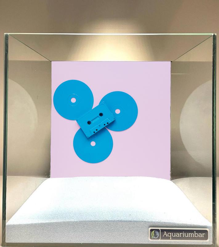 Внутри стеклянного куба на светло-лиловом фоне расположены три голубых диска и кассета. Композиция изображения представляет собой минималистичную сцену, где три голубых круга и кассета расположены на светло-лиловом фоне. Элементы расположены симметрично. Нет никаких других элементов, кроме указанных. Изображение не имеет явного смыслового посыла или истории. На переднем плане расположена небольшая платформа, имитирующая подложку. Главными элементами изображения являются три голубых диска и кассета. Все объекты имеют четкие геометрические формы и яркие цвета. Диски и кассета расположены на фоне, выдерживая визуальный баланс. Изображение выполнено в цифровой форме. Использование плоских цветов, ярких оттенков и простоты форм характерны для минималистичного дизайна. Изображение создает четкий и сфокусированный вид, придавая акцент на цвета и формы. Изображение расположено в замкнутом пространстве стеклянного куба на светло- серой поверхности. Небольшая надпись на дне указывает на происхождение изображения. Общее освещение равномерное, без ярких теней. Обстановка нейтральная. Впечатление спокойное и неконфликтное.