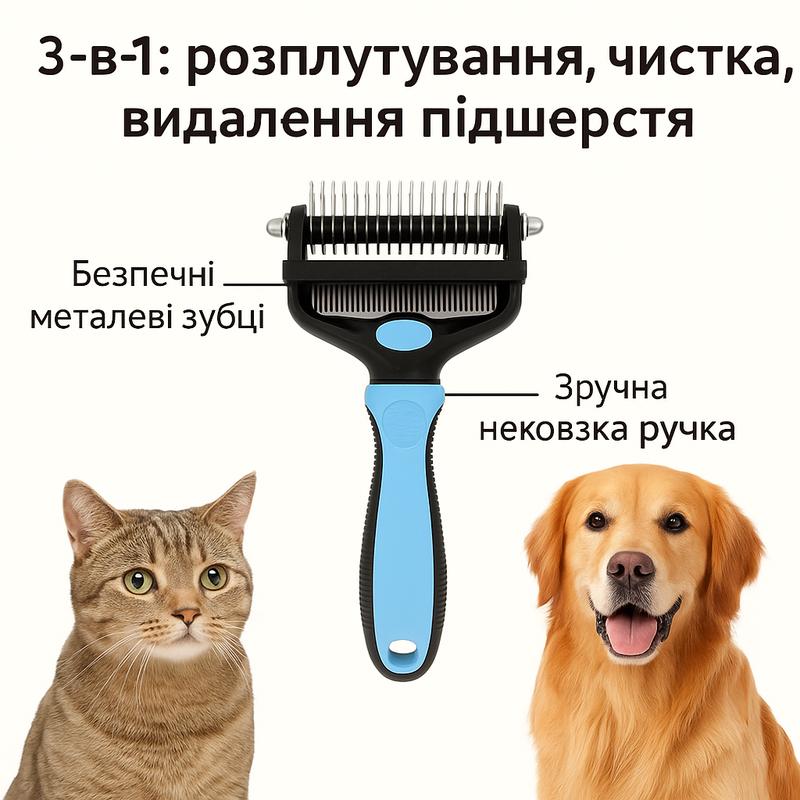Расческа 3-в-1 для животных mykotky | щетка для котов и собак, удобная ручка, металлически...
