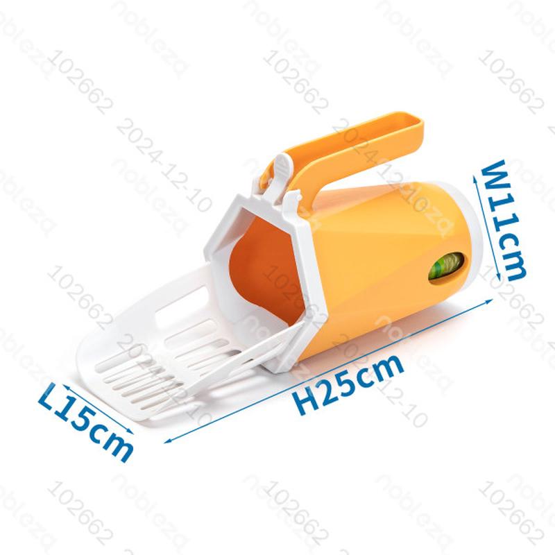 Пластиковый совок-контейнер для мешка для уборки отходов станет отличным помощником в доме, саду или на прогулке, позволяя быстро справиться с беспорядком, оставленным животными . Позволяет избавиться от загрязнений, не прикасаясь к ним. Одним движением вы собираете фекалии и комки, и они падают в контейнер для сбора. На ручке имеется держатель для рулона мусорных пакетов. Нажмите на белую ручку, чтобы отделить белую часть от желтой, что упрощает замену мусорных мешков. Цвет оранжевый. Особенности: - прочный материал - оригинальный дизайн - простота использования - удобная ручка - гигиеничный - компактный