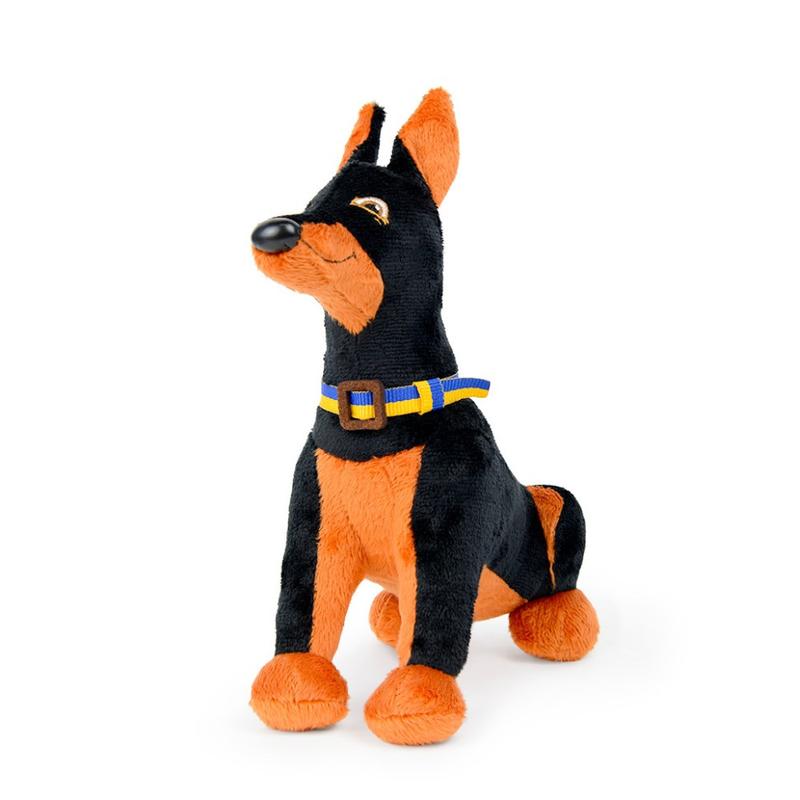 Игрушка плюшевая Доберман Зевс в патриотическом ошейнике — станет вам лучшим приятелем и охранником дома. Настоящий патриот Украины обожает крепкие объятия, поэтому не следует сдерживать свои желания. Благодаря компактному размеру этой игрушечной собаке удобно везде брать с собой. гипоаллергенных материалов. Размер: 24 см
