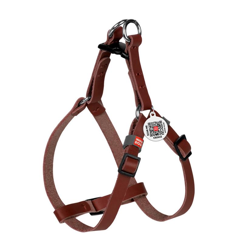 Шлея для котов и мелких собак кожаная waudog classic c qr паспортом, пластиковый фастекс,...