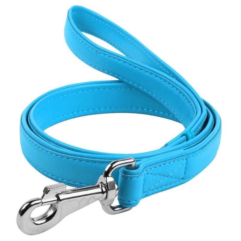 Поводок для собак кожаный waudog glamour, ш 25 мм, дл 122 см голубой