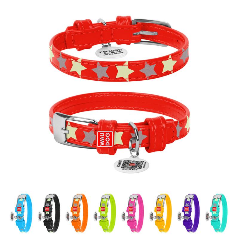 Ошейник для собак кожаный waudog glamour с qr паспортом, узор "звёздочка", светящийся/свет...