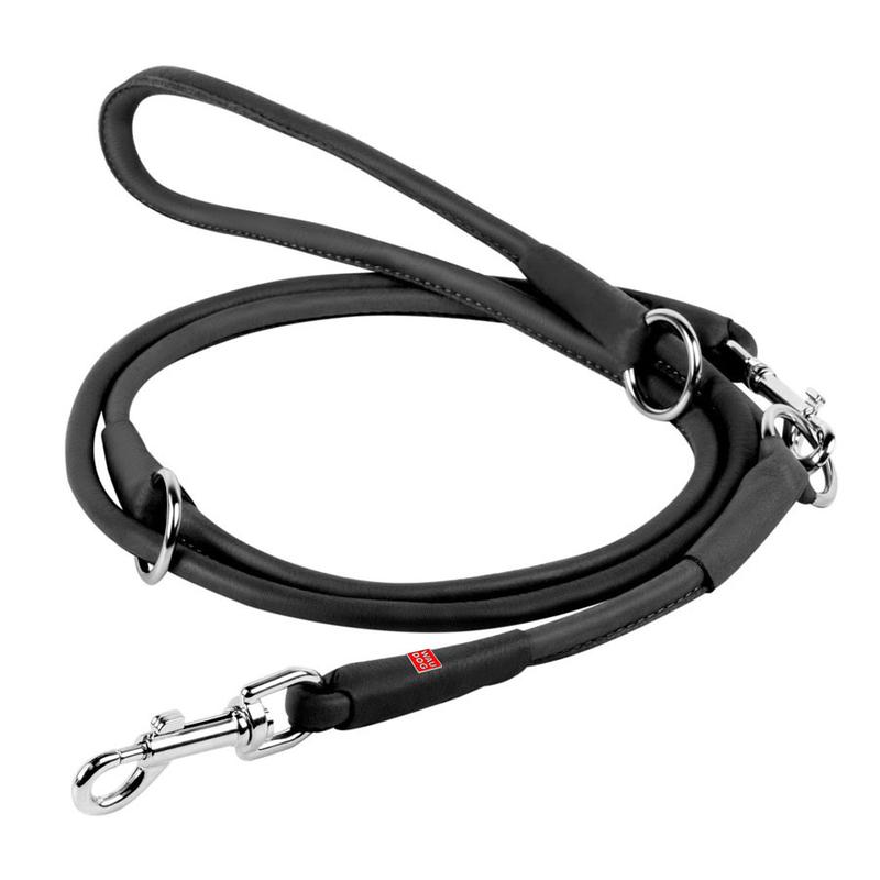 Поводок-перестежка для собак кожаный waudog soft, круглый, д 10 мм, дл 183см черный