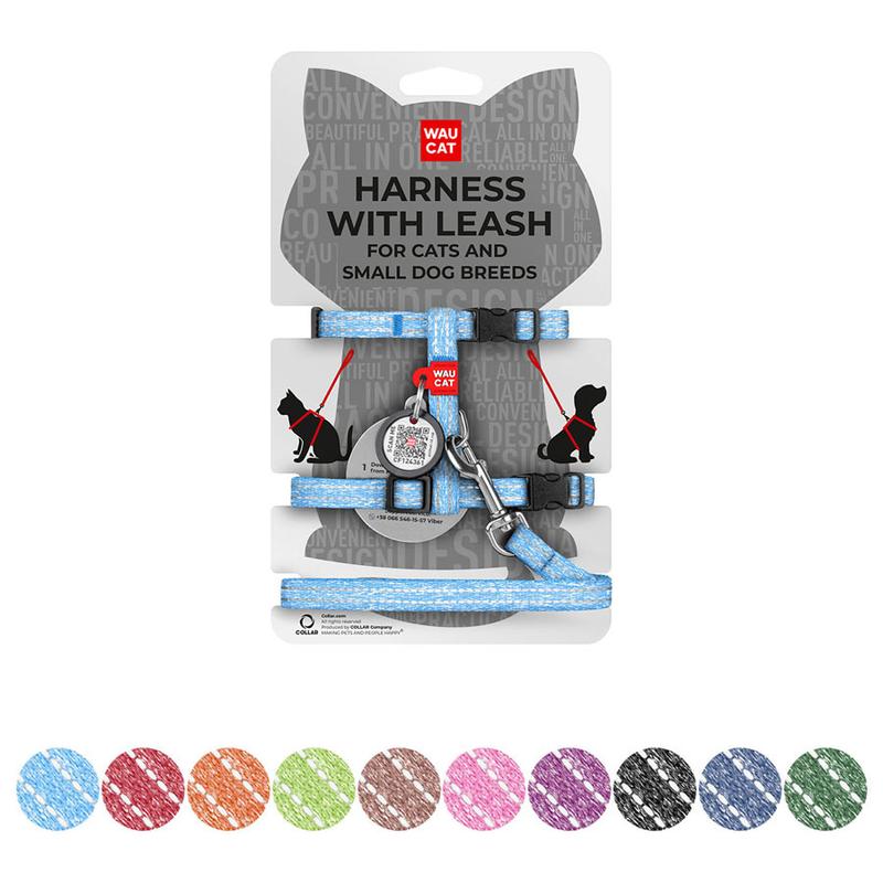 Шлея с поводком для котов waudog re-cotton с qr паспортом, из восстановленного хлопка, све...