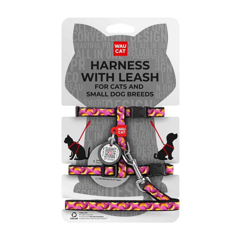 Шлея с поводком для котов и мелких пород собак waudog nylon с qr паспортом, рисунок "банан...