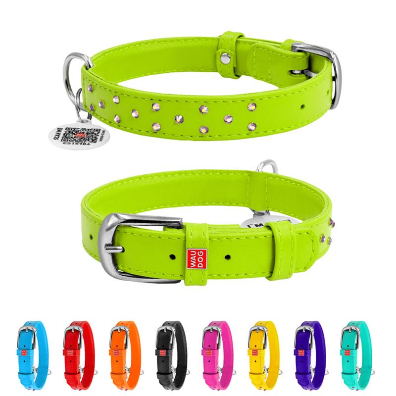 Ошейник для собак кожаный waudog glamour с qr паспортом, с клеевыми стразами, ш 20 мм, дл...