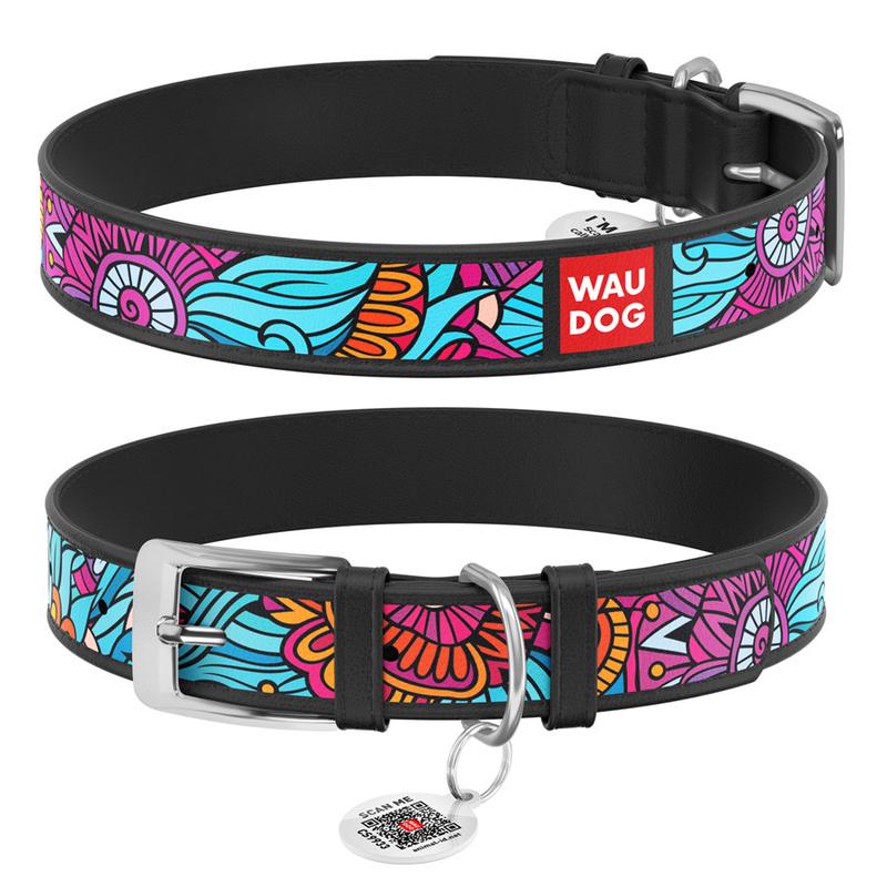 Амуниция WAUDOG – новая серия кожаной амуниции, изготовленная из качественной натуральной кожи, украшенная полноцветным износостойким рисунком. Благодаря ярким и привлекательным узорам эти изделия просто не смогут остаться незамеченными. Длина ошейника подбирается в соответствии с обхватом шеи хвостатого друга, который определяют измеряющей лентой. При этом правильно добавлять к полученному результату от 2 см (для средних и мелких пород) до 5 см (для больших), чтобы ошейник не натирал и не сдавливал шею животного.