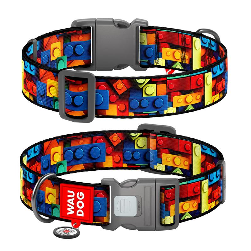 Ошейник для собак нейлоновый waudog nylon с qr паспортом, рисунок "голубые", пластиковый ф...