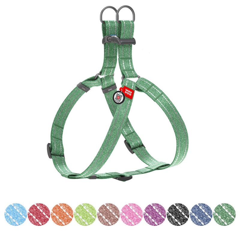 Шлея из восстановленного хлопка waudog re-cotton с qr паспортом, светоотражающая, пластико...
