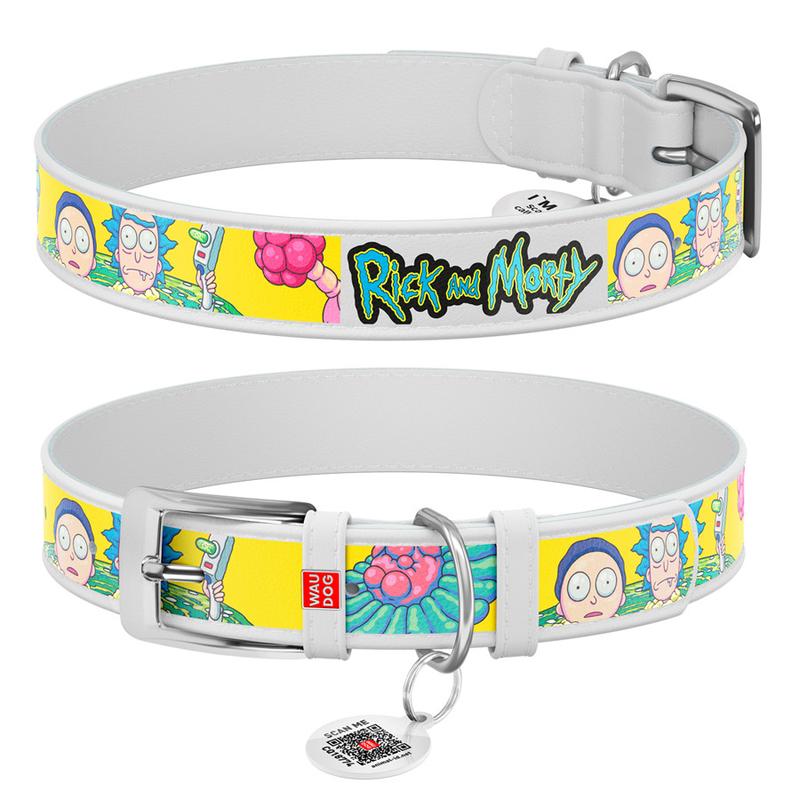 Ошейник для собак кожаный waudog design с qr паспортом, рисунок "рик и морти 1", xs, ш 12...