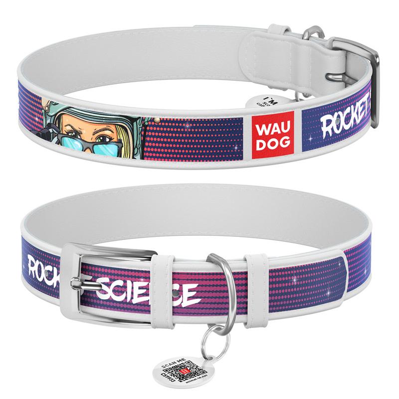 Ошейник для собак кожаный waudog design с qr паспортом, рисунок "космос. ракетостроение",...
