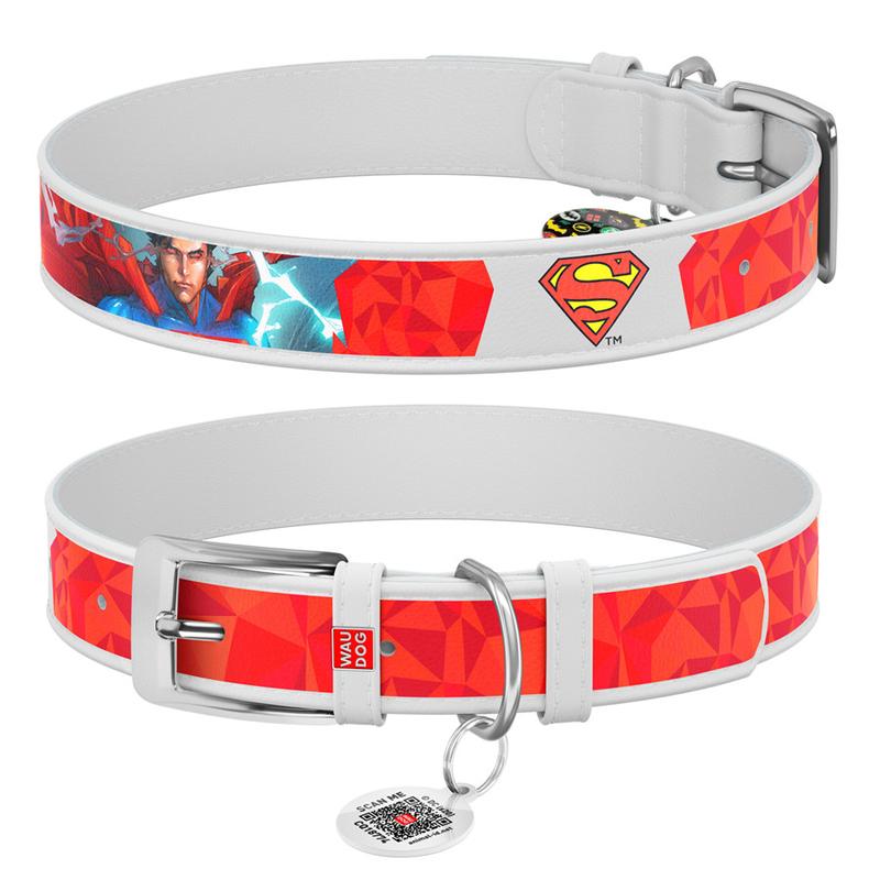 Ошейник для собак кожаный waudog design с qr паспортом, рисунок "супермен1", l, ш 25 мм, д...