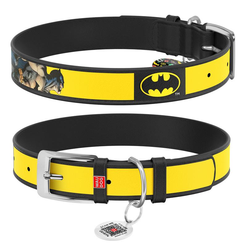 Ошейник для собак кожаный waudog design с qr паспортом, рисунок "бэтмен2", m, ш 20 мм, дл...