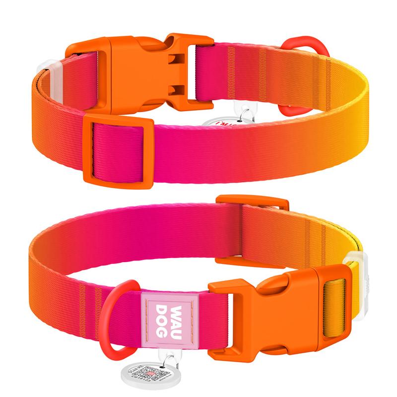 Ошейник для собак из нейлона waudog nylon recycled c qr паспортом, градиент, пластиковый ф...