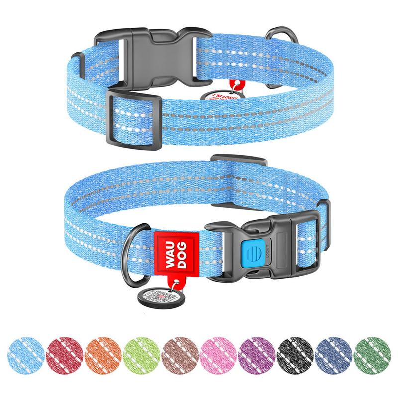 Ошейник для собак из восстановленного хлопка waudog re-cotton с qr паспортом, светоотражаю...