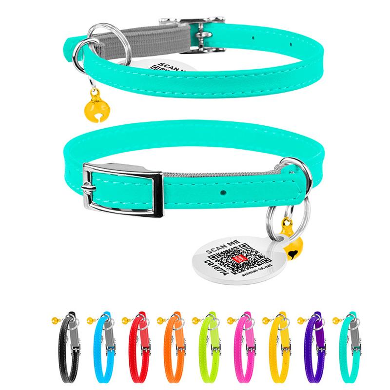 Ошейник для котов кожаный waudog glamour с qr паспортом, без украшений, xxs, ш 9 мм, дл 17...