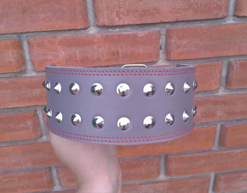 Ошейник из натуральной кожи "lockdog" с маленькими шипами серый xl, гигантские