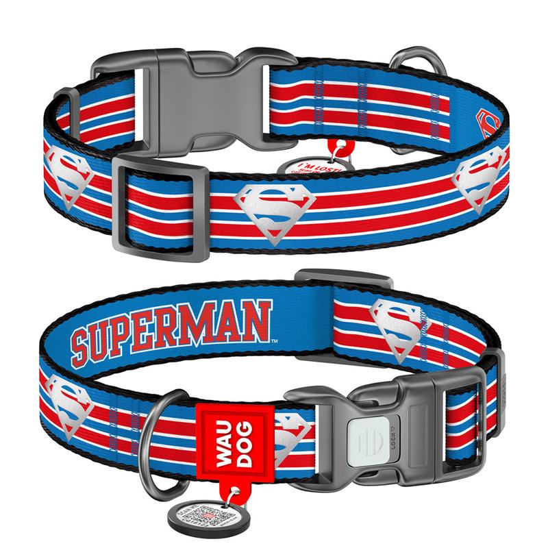Ошейник для собак нейлоновый waudog nylon c qr паспортом, светоотражающий, рисунок "суперм...