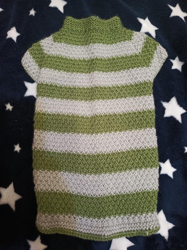 Удобная вязаная одежда для песика. Ручная вязка. Сировина нова. Реглан 13см, спинка 33 см. П/О 22см.