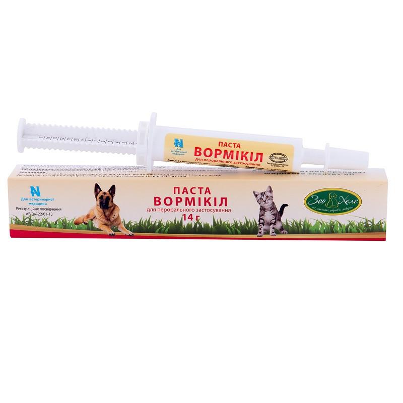 Паста Вормикил 14 гр УЗВПП — эффективное средство для борьбы с глистными инвазиями у домашних животных и птицы. Этот препарат быстро и надежно уничтожает широкий спектр кишечных паразитов, обеспечивая здоровье и комфорт вашему питомцу. Благодаря удобной форме выпуска и простой дозировке паста становится незаменимым помощником в профилактике и лечении паразитарных заболеваний. Преимущества пасты Вормикил 14 гр УЗВПП - Широкий спектр действия: эффективно против круглых и ленточных глистов. - Быстрый результат: уничтожает паразитов уже после первого применения. - Удобная форма: паста легко дозируется и применяется, подходит для разных видов животных. - Безопасность: препарат имеет минимальные противопоказания и редко вызывает побочные эффекты. - Профилактика и лечение: подходит для регулярного использования для предотвращения повторного заражения. Состав и действие препарата Активное вещество пасты — альбендазол, известный своей эффективностью против широкого спектра гельминтов. Паста Вормикил действует путем парализации и гибели паразитов, что способствует их выведению из организма животного естественным путем. Средство быстро всасывается и начинает действовать уже в первые часы после применения. Кроме альбендазола, паста содержит вспомогательные компоненты, обеспечивающие стабильность и удобство применения препарата. Способ применения Животное Дозировка Способ применения Кратность Собаки и кошки 10-15 мг альбендазола на 1 кг массы тела Паста наносится на корень языка или смешивается с кормом Однократно, при необходимости повтор через 10-14 дней Птица 10 мг альбендазола на 1 кг массы тела Паста дается непосредственно в клюв Однократно, при необходимости повтор через 10-14 дней Перед применением рекомендуется проконсультироваться с ветеринарным специалистом и соблюдать указанные дозировки.
