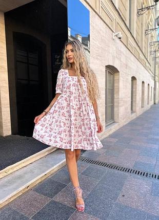 Красное хлопковое платье муслин