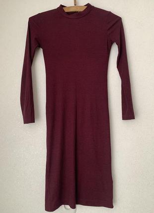 Трикотажне плаття в рубчик довжина міді з розрізу на ніжки та груди