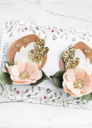 Повязка с ушками оленя новогодняя повязка для девочки ушки олененка с цветами