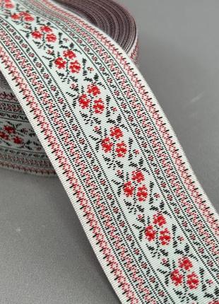 Тесьма з українським орнаментом 20 мм - біла з червоним