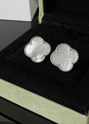 Сережки в білому та сріблястому кольорі, 4 елементи/елегантні та стильні прикраси конюшини