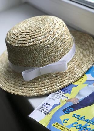 Соломенная шляпка/канотье + набор из 5 лент в подарок)
