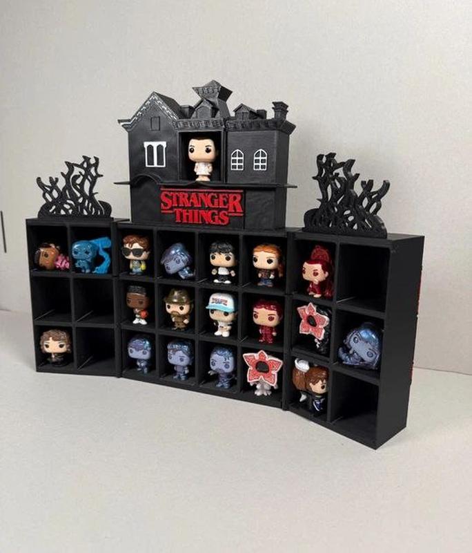 🔥 Стенд для фанатов Stranger Things 🔥 Эффектный стенд/полка для коллекционных фигурок в стиле сериала Stranger Things. Идеально подходит для: фигурок Kinder, Funko, минифигур декора комнаты подарка фанату сериала 🖤 Темный атмосферный дизайн 🏠 Верхний элемент в виде дома 📦 Несколько секций для удобного размещения коллекции 🛠 Прочный, аккуратно собранный 🎨 Цвет: черный / серый (возможно под заказ) 🖨 Изготовление под заказ ❗ Фигурки на фото — для приклада, в комплект не входят 💬 Пишите — ответьте быстро 📦 Открытка Новой почтой 🎁 Возможен индивидуальный заказ (другий сериал / надпись)