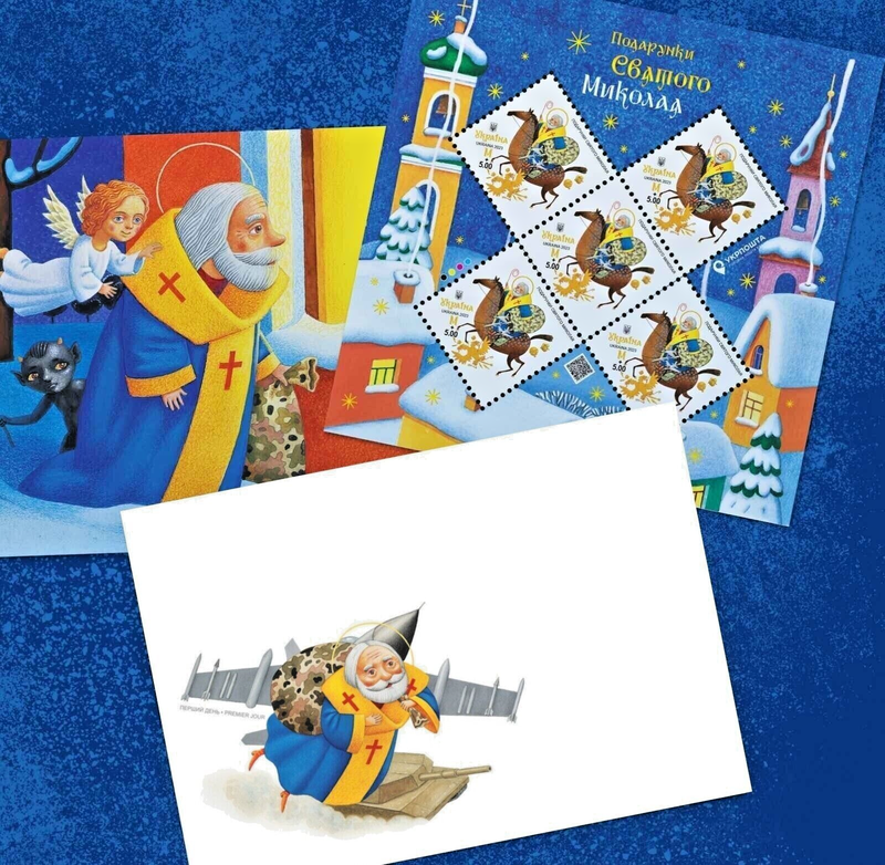Набір комплект подарунки святого миколая марка+ конверт + листівк