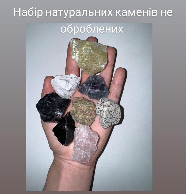 🔸 Цитрин Описание: прозрачный жёлтый или мёдовый камень, ассоциируется с солнцем и теплом. Свойства: камень радости, оптимизма и финансового благополучия. Использование: класть в рабочем пространстве для привлечения удачи и достатка; носить как амулет для уверенности; во время медитаций держать у солнечного сплетения для гармонизации энергии. 💗 Розовый кварц Описание: нежно-розовый камень, символ любви и гармонии. Свойства: камень сердца, способствует внутреннему спокойствию, принятию себя и тёплым отношениям. Использование: положить возле кровати для гармонии в личной жизни; использовать в медитации для раскрытия сердечной чакры; носить с собой, если нужна эмоциональная поддержка. 💚 Зелёная яшма Описание: непрозрачный зелёный камень с прожилками. Свойства: камень здоровья, силы и стойкости. Использование: держать дома для защиты от негативной энергии; использовать как «камень-целитель» в практиках восстановления; носить при себе в трудные периоды жизни. 🐾 Далматиновая яшма Описание: светлый камень с чёрными «пятнами», напоминает шкуру далматина. Свойства: приносит лёгкость, хорошее настроение и защиту от негатива. Использование: носить с собой для поднятия настроения; ставить в детской комнате для создания атмосферы игры и радости; использовать как камень-защитник в путешествиях. ⚫ Обсидиан Описание: чёрный вулканический камень, блестящий или матовый. Свойства: сильный защитный камень, помогает увидеть правду и избавиться от иллюзий. Использование: носить как оберег от негативной энергии и «дурного глаза»; в медитации — для глубокого самопознания; держать у входной двери для защиты дома. 🔵 Синий авантюрин Описание: камень с синим оттенком и лёгким мерцанием. Свойства: камень интуиции, вдохновения и внутреннего спокойствия. Использование: брать в медитацию для развития интуиции; носить с собой для концентрации и ясности мыслей; класть на рабочий стол для вдохновения в творчестве. 🤍 Говлит Описание: белый камень с серо-чёрными прожилками. Свойства: камень успокоения, помогает снять стресс и тревогу. Использование: держать у кровати для спокойного сна; носить с собой в стрессовых ситуациях; в медитации — для глубокого расслабления. 🌿 Амазонит Описание: зелёно-бирюзовый камень с мягким блеском. Свойства: камень гармонии, правды и искреннего общения. Использование: носить с собой для уверенности в общении; класть возле рабочего места для гармоничной атмосферы; использовать в медитации для баланса сердечной и горловой чакры. ✨ Общий совет: необработанные камни хорошо держать в «живом» виде: на алтаре, возле растений, в кармане или в мешочке. Их можно периодически очищать (водой, дымом ладана, лунным светом).
