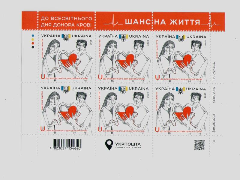 Продам лист почтовых марок Стан - негаш., MNH. Доставку оплачивает покупатель. Донорская кровь - это ценный, неподдельный ресурс, что чрезвычайно важно для реабилитации и лечения пациентов, нуждающихся в крови или ее компонентах (трансплантология, лечение онкозаболеваний, сложные операции и т.д.). До широкомасштабного вторжения ротии лишь треть пациентов в Украине получаладонскую кровь вовремя. В условиях современных вызовов, потребность вдонанской крови возросла на 60%. В результате сегоднядонские организации активно поддерживают систему крови Украины, ее своевременную доставку на фронт, мобилизуют доноров крови для помощи пациентам и раненным защитникам. По статистике, более 60% случаев гибели военных связаны с кровопотерем: в большинстве случаев этого можно было бы избежать, если бы вовремя сделать переливание крови. Почтовый выпуск «Шанс на жизнь», инициированный ДонорUA (ГО «Всеукраинская ассоциация доноров Украины») до 10-летия своего создания и которая проводит донации под лозунгом «Твоя кровь победит!», намерена привлечь внимание общества к проблеме стабильной необходимости донорской крови и вдохновить еще больше людей на участие в 70-м движении. Характеристики: • Художник - Лиза Маркина • Тираж марки — 150 000 • Дата выпуска (рик) - 14.06.2025 • Номер за каталогом Укрпошти — 2190 • Размер листа, мм - 117х83 • Размер марки, мм — 33х30 • Количество марок в листе - 6 • Номинал каждой электронной марки - U