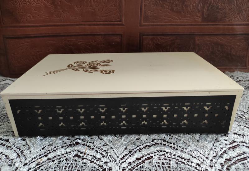 Шкатулка винтаж, СССР с ажурными вставками контрастного черного цвета Размер 5,5 х 24 х 15