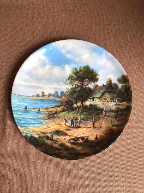 Тарілка порцелянова, колекційна, підвісна від Tirschenreuth 1989р. «Рибалка в Дімені» Г. Е. Фельдкамп Перше видання в колекції «Прибережні враження» Оригінальний витвір мистецтва був створений ексклюзивно для цієї колекції художником Г. Е. Фельдкампом. Виготовлено з високоякісної твердої порцеляни з Тіршенройта. Це номер пластини 2933 A, лімітованої серії тривалістю 75 днів випалу. BRADEX-№: 22-T40-4.1 Не для харчових продуктів через використання рідкісних пігментів для точності передачі кольору © 1989 Тіршенройт Діаметр 19,5см