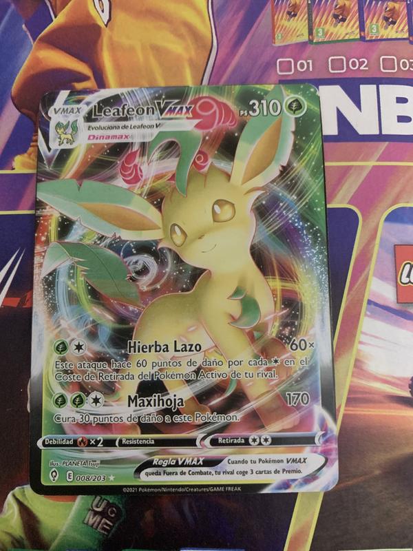 Назва картки: Leafeon VMAX Номер картки: 008/203 Набір: Sword & Shield – Evolving Skies Рідкість: Ультрарідкісна (Ultra Rare) Ілюстратор: Planeta Tsuji.